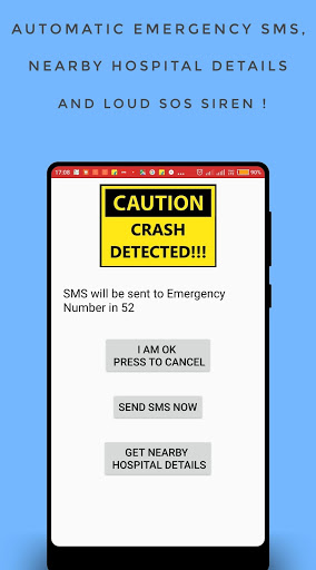 In case of Emergency situations like Crash or Accident following actions are automatically initiated by the app :