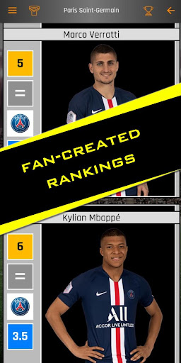 The first app dedicated to football fans. When the match is over, come and evaluate the performance of players in your team. A ranking will be automatically generated for each player. At a glance, you will be able to observe the ranking and the performances of the players of your favored team, but also the other teams of the championship. The ranking will be reset at the beginning of each season.