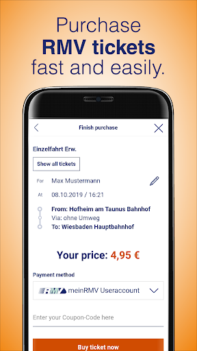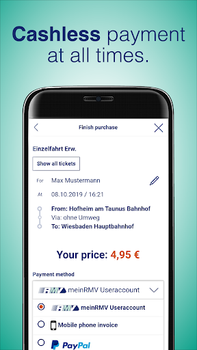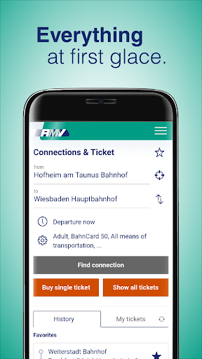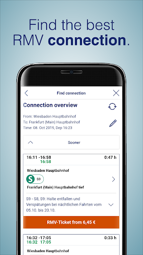 Current connection information: The RMV-App offers you a fast door-to-door connection information including prognosis data and current traffic information.