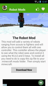 This ROBOT MODS For MCPE minecraft mod will add a variety of robots ranging from scouts to fighters and will allow you to control them all with one controller. This contoller allows the player to see what the robot sees and control it using the W,A,S and D keys. These minecraft robot mod will help you fight against your enemies. They can also level up, Players need to manually navigate the interior of the mech in order to wield its variety of deadly weapons which improves your health, attack and defense. ROBOT MODS For MCPE including The fully functioning robot took 60 hours to construct, and does not need Command Blocks or any other mods to get up and running. In fact, if you're patient enough you could build it in Survival Mode. Survive to battle the of robot with ROBOT MODS For MCPE. Craft a hatchable egg, and you can ride your very own epic amazing robot mods.