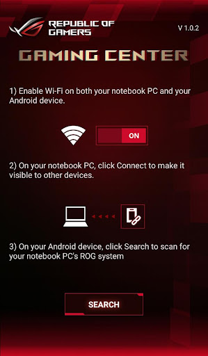 Supports connecting with PC's ROG Gaming center v2.5.x via Wi-Fi Direct or Bluetooth.