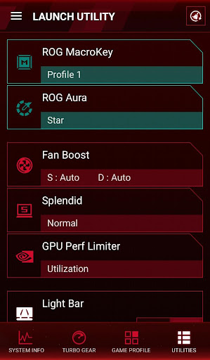 - Game Profile: Apply all related ROG app settings by one click before game launching.