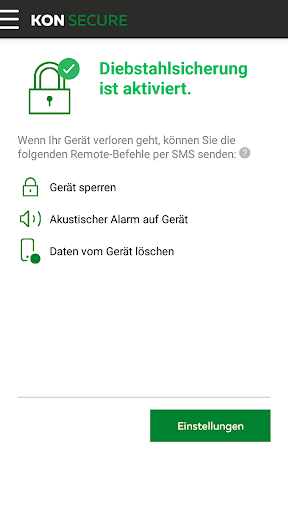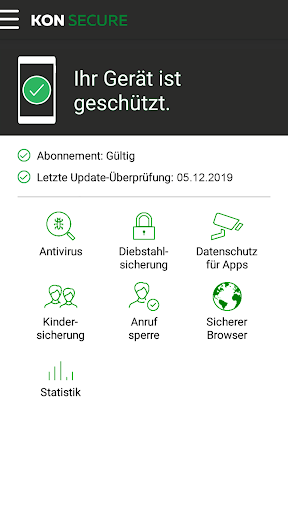 KON SECURE is the antivirus software by Konverto that protects your Android smartphone or tablet from malware, spyware, hackers and identity oder data theft. It includes a parental control function. KON SECURE locates your stolen or lost device.