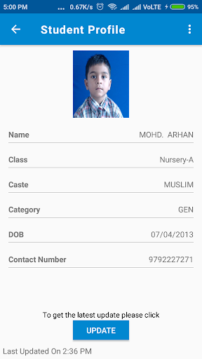 It contains students school related information and academic performance details like Student Profile, Examinations Details, Attendance Records, circular and notices, communication sent to parent, etc.