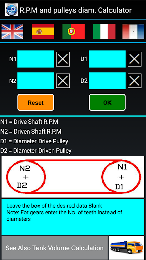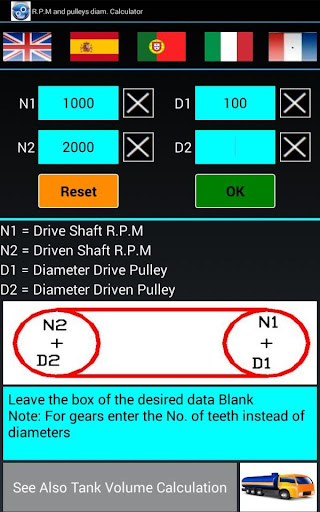 Leave blank the box of the desired data. Note: For Gears Enter the Number of Teeth Instead of Diameters
