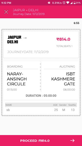 The app allows you to search and reserve bus tickets for routes covered by RSRTC, in and around Rajastan. Choose from various service type (A/C and non-A/C).