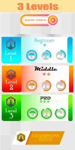 You can choose 3 levels of difficulty depending on your fitness. Each level has its own time duration of training and a different number of rounds.