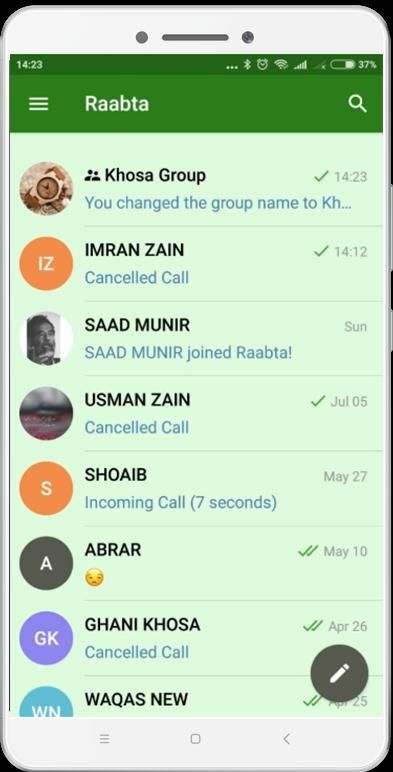 Raabta Messenger is a FREE mobile messaging app which is used for instant messaging, sharing your photos, videos, audio recordings and for group chats. Raabta app, which is free to download, can be used to communicate with your all your friends and family on Raabta and with your phone contacts.