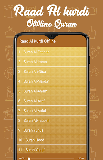Raad ul Kurdi is the Quran Application and this makes easy for Muslim people to read Quran or Listen Quran through Mobile Phone. This app is specially made for Muslim people around the world who don't read the Quran but they can Listen to the Quran through this app. This application is a complete Quran from First Para to 30 paras. you can listen to the Quran during traveling through the Raad ul Kurdi app.