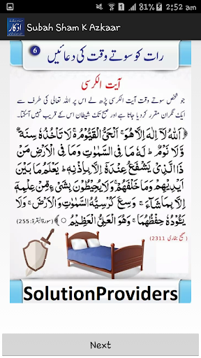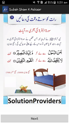 "Raat K Azkaar" is an application which is specially designed in such a way that it contains all the Dua's that you have to read before going to bed at night. This application also contains Dua's for reading in the morning when you wake up. All the Dua's are with authentic references to Quraan & Hadees so you don't have to worry about the authenticity of the material provided in this application.