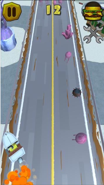 Race Bikini Bottom is a fun arcade about the adventures of our beloved hero. He never learned to drive, but this does not stop his attempts to drive. Help him get to his destination, while collecting jellyfish and avoiding obstacles.