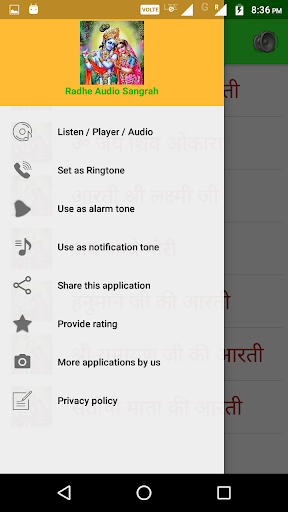 It has following features- 1.HD Audio 2.Set as alarm/notification tone 3.Set as ringtone 4.Play and pause button 5.Mute button 6.Forward and backward button 7.seek bar