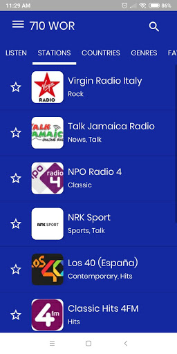 Within our 710 WOR app you will find, in addition to your favorite radio station many other radio stations we have more than 1000 online radio stations classified in more than 20 styles.