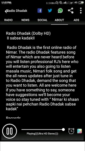 Radio Dhadak is the first online radio of Nimar. The radio Dhadak features song of Nimar which are never heard before you will listen professional RJ’s here who will entertain you also going to listen masala music.so stay tuned with “ Nimar ki shaan aapki nai pehchan Radio Dhadak sabse kadak”