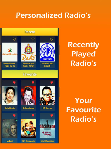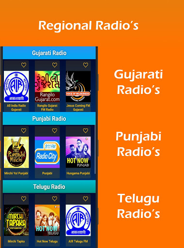 Radio Mirchi, Red FM, Pehla Nasha, All India Radio, FM Gold, 92.7 Big FM, Hungama Radio, Purani Jeans, Vividh Bharti, Radio Mango, Meethi Mirchi, Radio City,