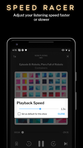 Doesn't quite deliver on its promises. I download this app for a automatic queueing, automatic downloading, autoplay, and automatic deletingof podcasts. Unfortunately none of it really worked and after enough poking around I gave up to Spotify, which I hate, bc I need to download and delete podcasts manually.