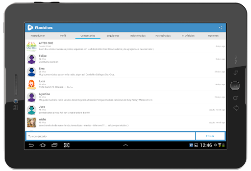 Raddios a une version Web (http://www.raddios.com) et une application mobile, via les deux Media Vous pouvez créer votre propre liste de radios pour écouter vos stations préférées tous les jours. Vous pouvez laisser des commentaires et être suiveur de la radio en ligne que vous souhaitez.