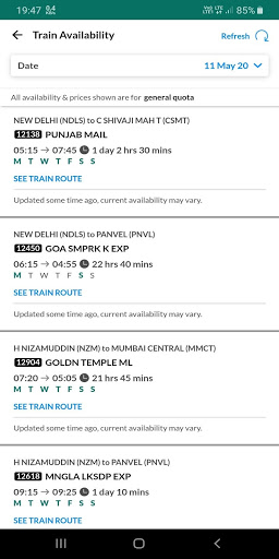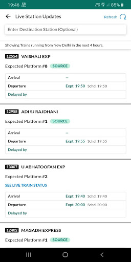 DISCLAIMER: This app provides data from third party websites. This app is not affiliated with NTES or IRCTC in any way. By using this app, you are solely responsible for any legal implications/liabilities arising from using the app.