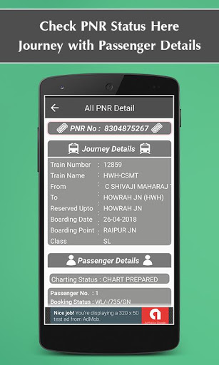 Railway PNR Status application happy to helps you check PNR prediction for wait-listed tickets.