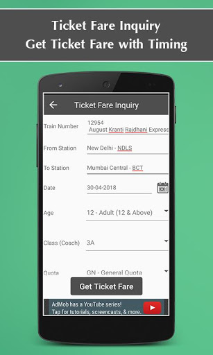 "Railway PNR Status - Running Train Live Status" application is not affiliated to irctc or indian railways and there are no warranties associated with the application.