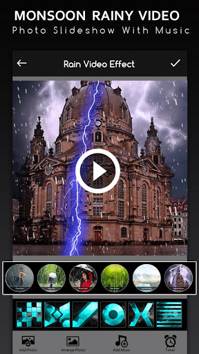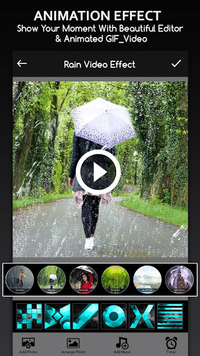 Set Photo Animation Slide Select Rain Animated GIF-Theme Add Music Set Animation Timer = Photo Animation With Rain Effect Video Maker