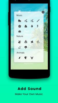 It is also possible to set a timer and turn off the screen. At the end of the set time, the sound fades gently and the app closes by itself, so you do not have to worry about close it if you fall asleep.