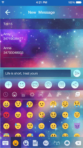 - Fast input emoji in message,text,email,note and chat with social apps