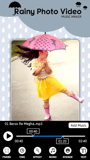 Rainy Photo Video Music Maker App is the easily create, edit your selected photos and add romantic music in video, to create slideshows and rainy stories with your photos.