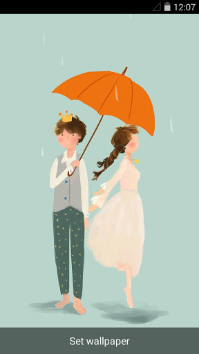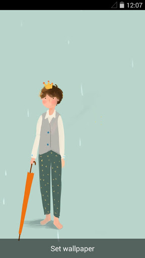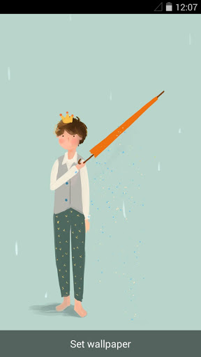 When touching the persistent boy with your fingers, he will open the umbrella and his beloved girl will also appear at the same time. But if you touch him again, his girl will disappear and the boy closes his umbrella as before.