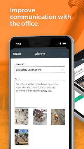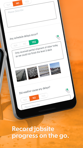 • Photo Management: Record and attach pictures and videos from your construction site