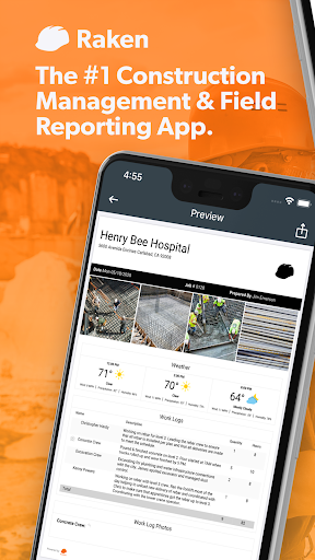 Raken is the #1 construction management and field reporting app. It's a simple, fast solution for streamlining your daily reporting, production tracking, time cards, toolbox talks, checklists, and construction photos, saving you time and money on your construction field reporting process.