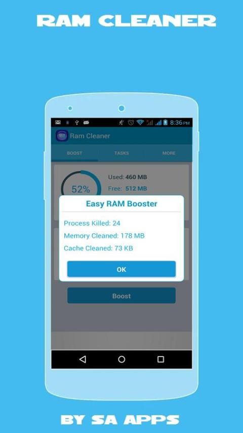 Ram cleaner app boosts your apps and games by freeing up phone memory (RAM), it speeds up your device and also save more battery.