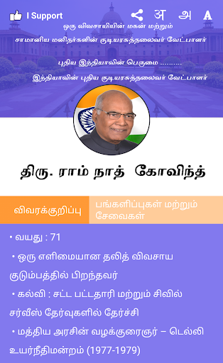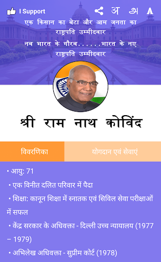 As an Indian, proud to see a humble person is going to become President. This app highlights the rich qualities of Shri. Ram Nath Kovind Ji. Let every Indian show support for his appointment.