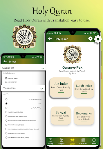 Complete Holy Quran You Can Read Offline and Listen Recitation Of Quran, Open any Juz or Surah directly from index. It has all 30 chapters and 114 Surahs.