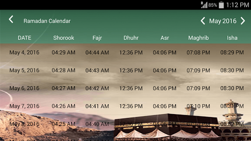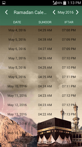 - App shows whole months suhoor and Iftar time in table fromat.