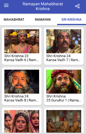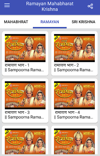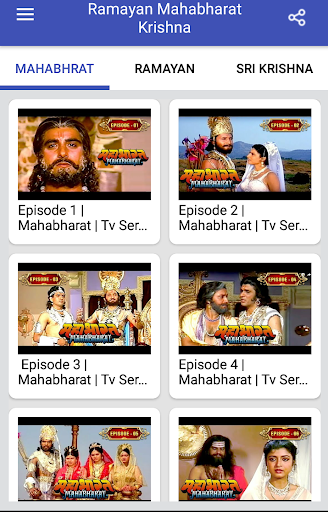 This App Ramayan, Mahabharata, Shri Krishna Video App is a Collections of Mahabharata TV Serial by B. R. Chopra, Sampoorna Ramayana TV Serial by Ramanand Sagar and Shri Krishna TV Serial by Ramanand Sagar.