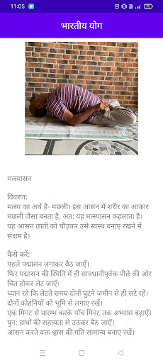 Application covers different types of Asanas namely: