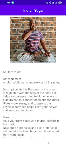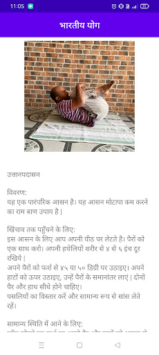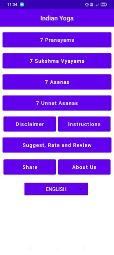 This app covers 4 packages of Yoga Asanas and Pranayamas. Each package contains 7 Asanas. Each Asana position is explained using pictures and instructions.