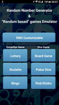 Con questa App puoi generare serie di numeri casuali completamente personalizzabili, inoltre hai a disposizione una serie di preset configurati per i principali giochi che si basano su estrazioni casuali di numeri. QUESTA APP EMULA ESTRAZIONI DI NUMERI E LANCI DI DADI, NON CONTIENE GIOCHI. Bingo casalingo, e hai perso dei numeri? Serata con gioco di società e non trovi più i dadi? Hai perso la pallina della roulette? :D