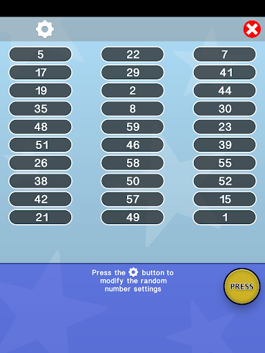 It shows a set of random numbers on the screen, you can configure 1-30 numbers, and