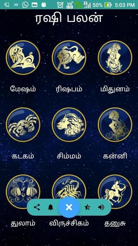Select a sign from mesh, vrishabha, mithun, karka, simha, kana, tula, vrishchika, dhanu, makar, kumbha, meena and read your daily horoscope i.e. aaj ka rashifal in Tamil.