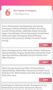 This hashtag app provides you best category hashtags and You can use only 40 tags at a time you can Use these tags daily for good result .. Enjoy this app and get more followers and more likes and more comments.