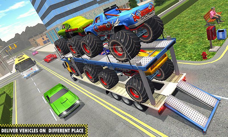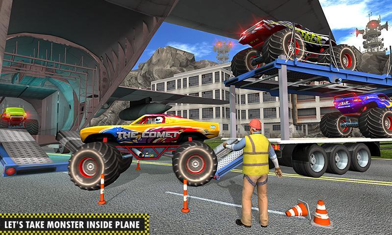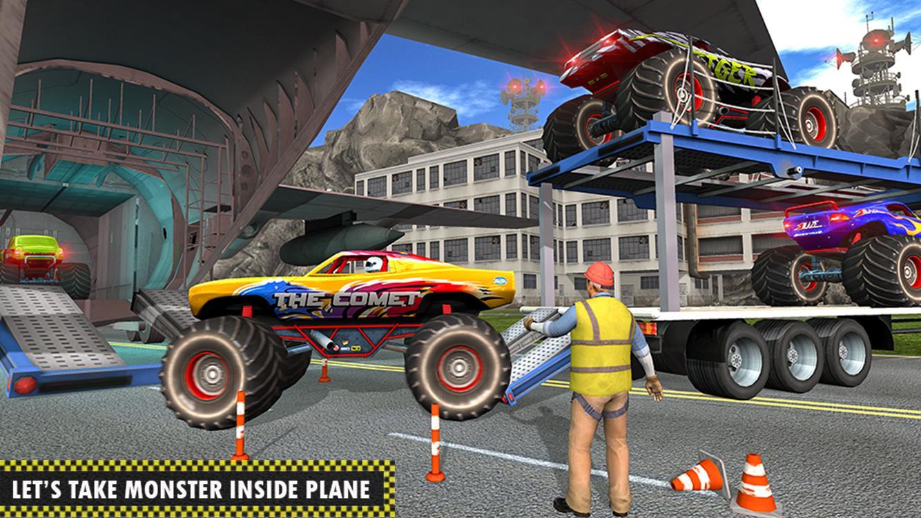 Enjoy The Best Transporting Game "Real Monster Truck Airplane Flight Pilot Transporter Game" Let’s start the challenge of monstertruck transport driver game having ultimate driving missions. Become the professional vehicle transporter to transport crazy monster vehicle on city roads and off road tracks with cargo transport trailer truck arena. You can get driving fun of real monster car to speed up your career in 4x4 monster vehicle transport game. We have designed an innovative idea of monster driver games in which you can transport monster truck 3d from one derby car race to any other monster parking point on city roads. Show expert car transporter skills in monstertruck driving by delivering onto cargo trailer truck driving. Play monster truck game and beat all your competitors in heavy monster truck derby car race. Get behind the wheel of big euro truck park 3d and load all crazy monster truck arena on large vehicle transporter truck destruction. Carefully drive extreme monster demolisher cars through city traffic and off road mountain tracks, load these real monster trucks on big transport truck