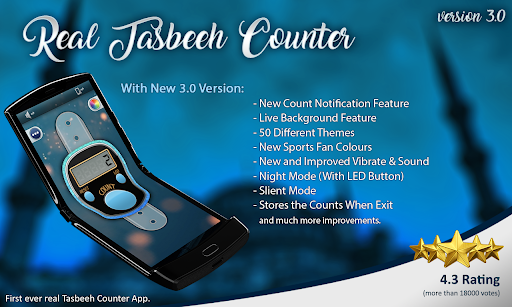 Real Digital Tasbeeh Counter stores the value even after exiting. Ideal to use as a Digital Tasbeeh.