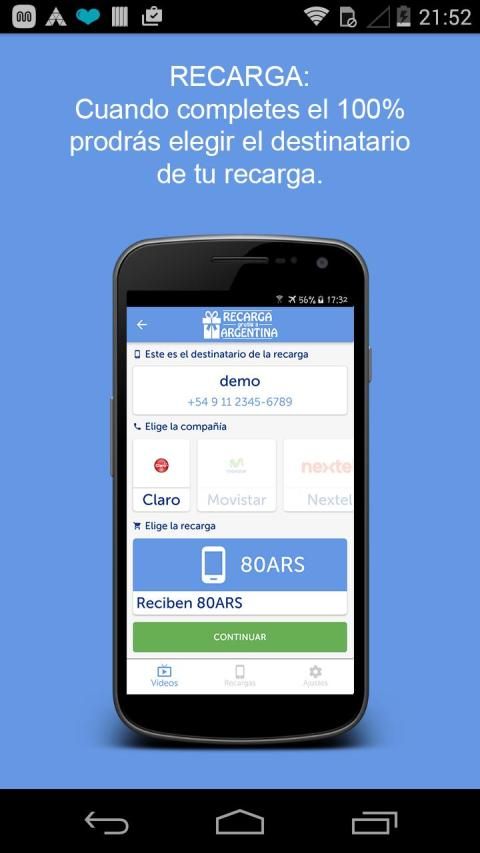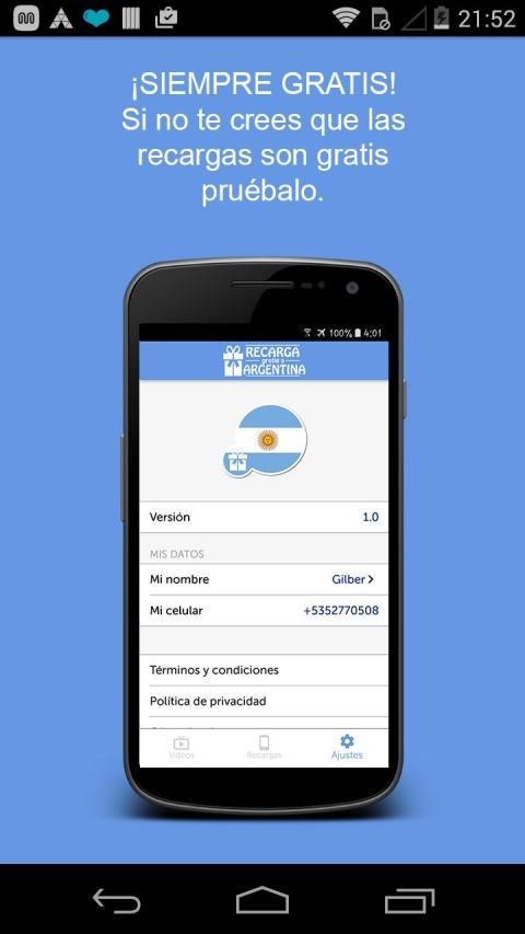 Esta aplicación de RECARGAS GRATUITAS a Argentina te permite recargar GRATIS cualquiera de los operadores que existen en Argentina: