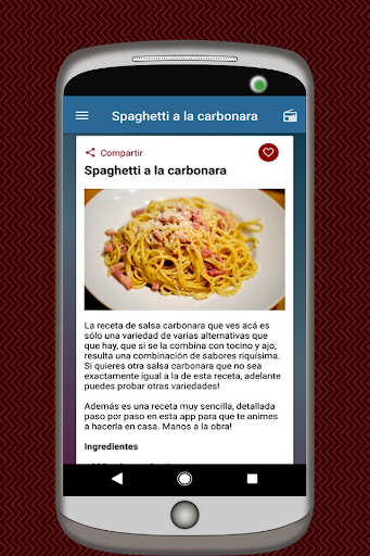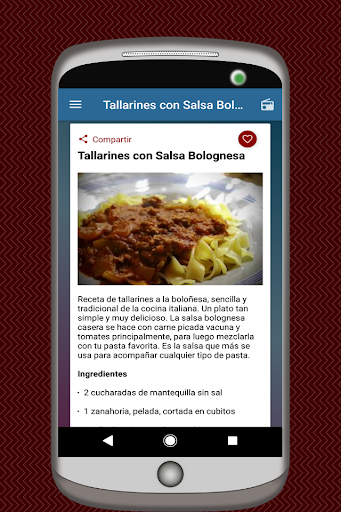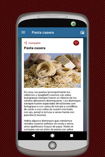 Siempre tendrás a mano en tu app las recetas de pastas en español cada vez que las necesites.
