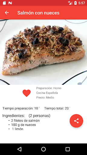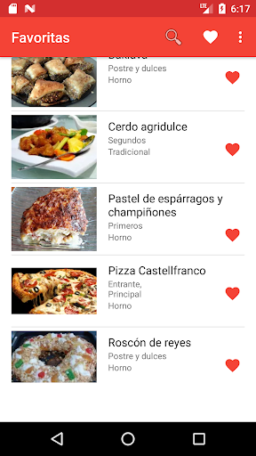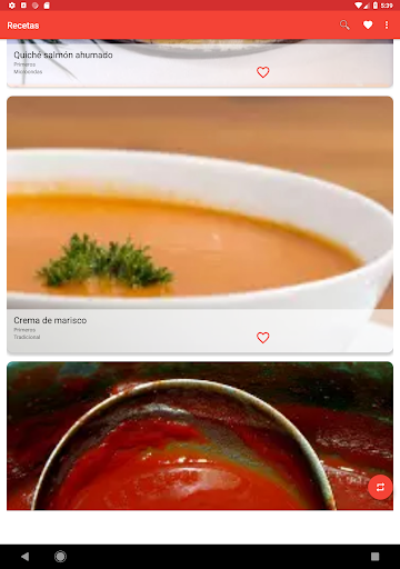 Se pueden marcar recetas como favoritas para pode consultarlas fácilmente.