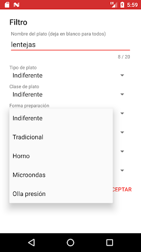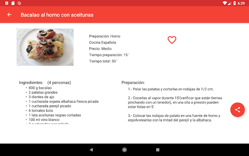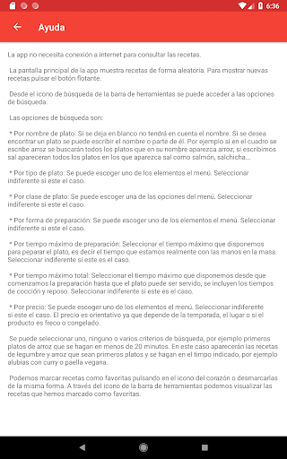 La app es totalmente funcional una vez descargada y no necesita conexión a Internet ni para la búsqueda de recetas ni para la visualización de las mismas.