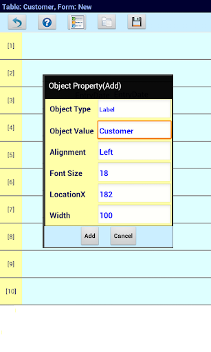 Form supports these object types: Label, TextBox, DateBox, Popup, CheckBox, CalculatedField, Picture, Link, Button, TableList.