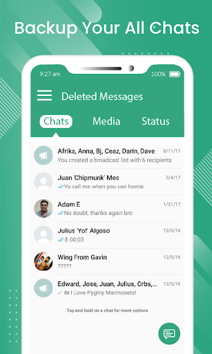 -> This deleted message recovery app can't save files like photos, videos, documents if auto download media features is turned off or they aren't completely downloaded! If the sender deletes the message having media in it before the messaging app downloads it, WAMR can't do anything to save it.